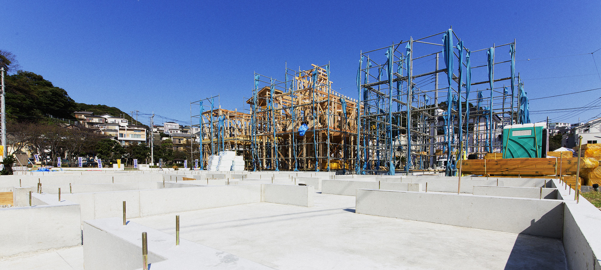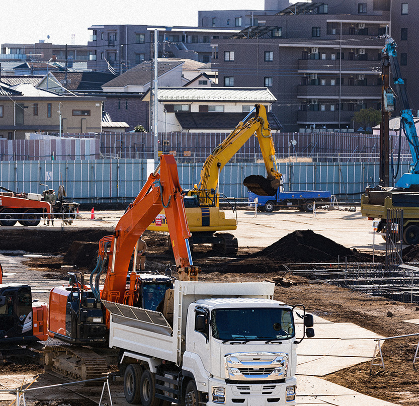 これまで数多くの現場で培った豊富な経験と確かな技術力をもとに、大手ハウスメーカー様からのご依頼を中心に、戸建住宅やアパートといった新築物件の基礎工事を幅広く手掛けております。
